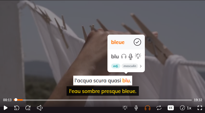 Lingopie révolutionne l'apprentissage en transformant votre passion pour les séries en machine à progresser (traduction + apprentissage combinés). Vous regardez de vraies séries italiennes avec des sous-titres interactifs bilingues.